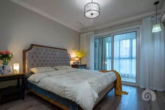 主卧室的色调和整个风格还是比较吻合的,白色的窗帘搭配上淡灰的墙色更显得清新的感觉,营造舒适的睡眠环境。