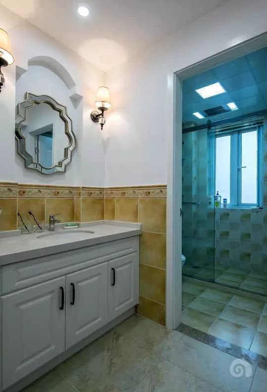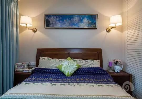 次卧空间搭配还是比较简单温和的,白色的衣柜,简单复古的壁灯,搭配上淡蓝色的窗帘,一眼看上去空间感还是比较舒服的。