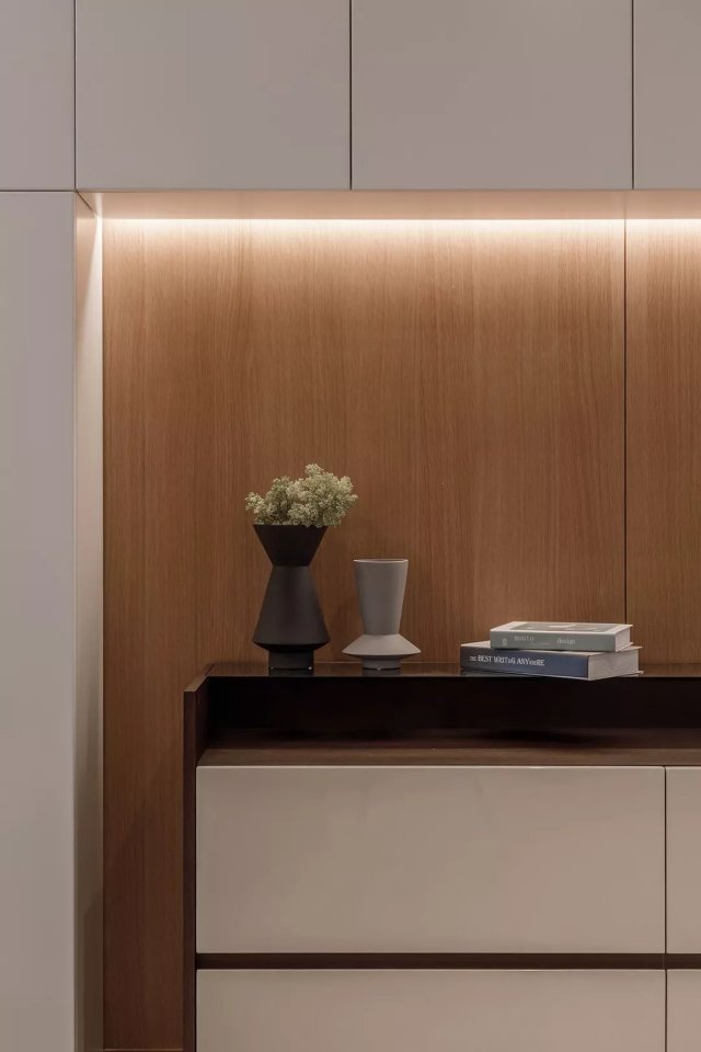设计师捋以多样的自然材质元素,以优雅的比例与材质色彩变化,坚持在材质选择与细节上的设计品位,以多种蓝色贯穿空间,在丰富多层次的灯光效果下,构建了一个具高质感和舒适感的生活空间,体现了一种“平静的奢华”。